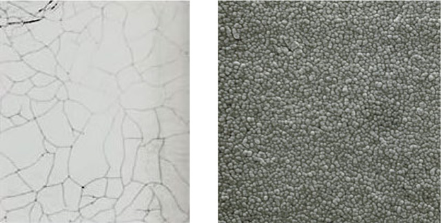 Common Hard Chrome coating (left) is prone to microcracking under stress while NTDC coating (right) microstructure is more resilient to stress.