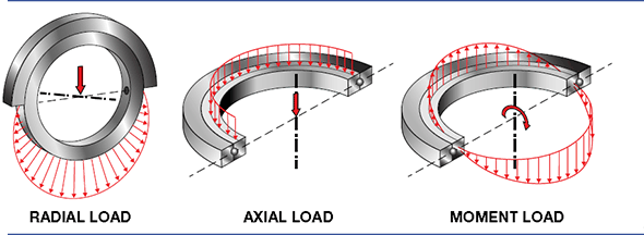 What is a moment load? A moment load is a tilting load that attempts to rotate the rings of a rolling element bearing in a rotational manner perpendicular to the designed rotational axis. Single ball bearings aren't usually designed to handle moment loads, but Silverthin offers engineered solutions for space and weight limited applications.